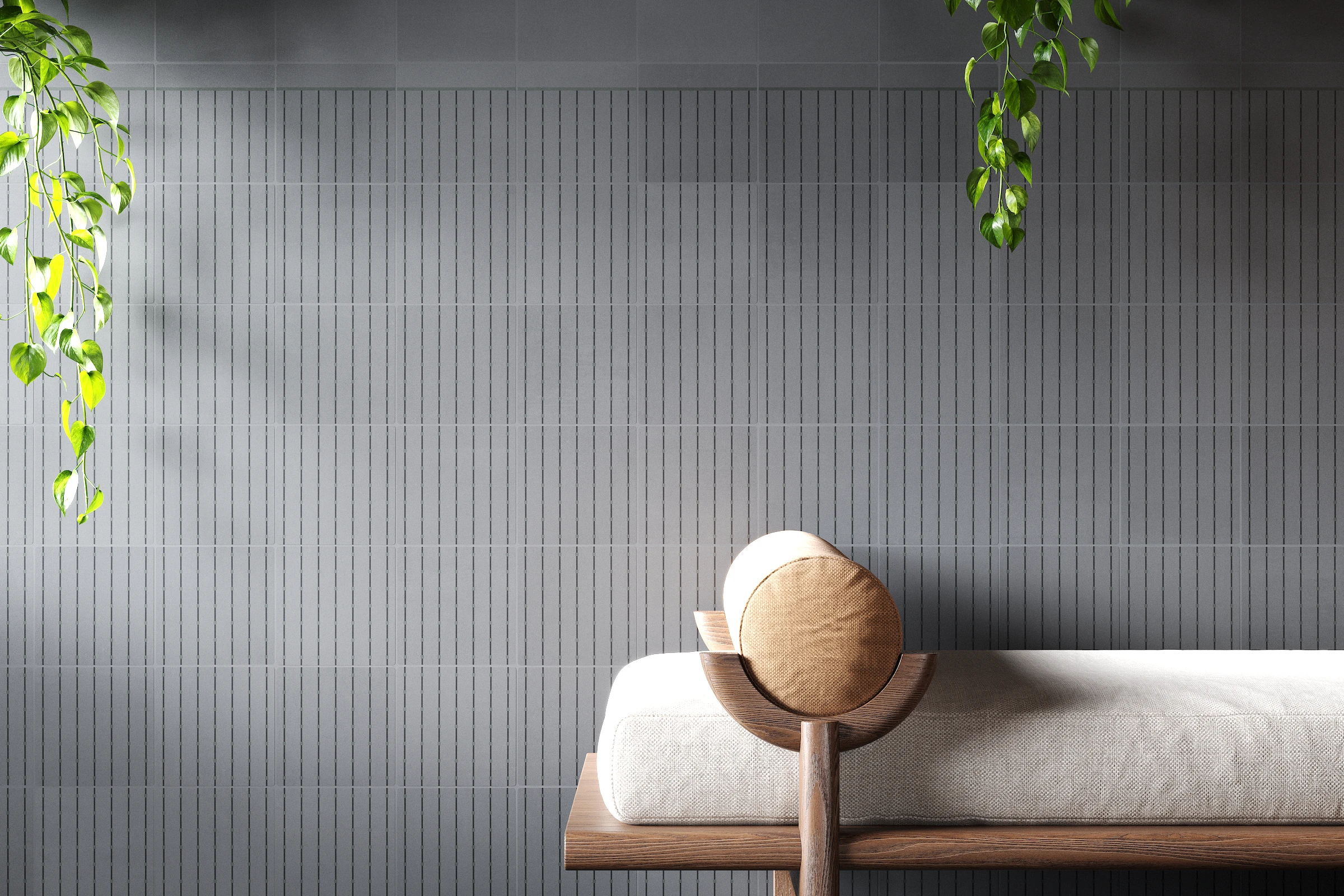 - Moderne Fliesen für die Küche: Perfekt für Küchenrückwände, die die Gleichmäßigkeit durchbrechen möchten. Ihre lineare Anordnung führt eine elegante Vertikalität ein, die harmonisch mit modernem Mobiliar korrespondiert.