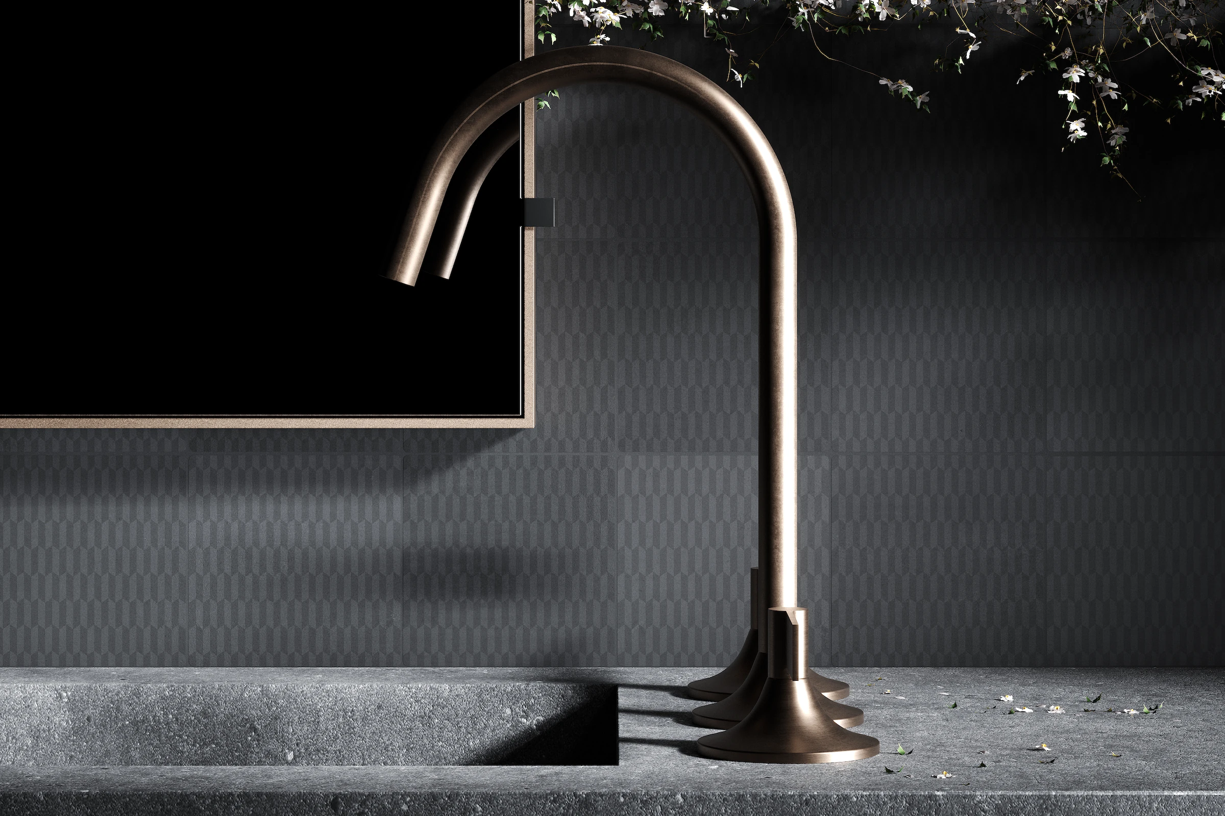 - Neutrale Farbpalette: In dieser Serie liegt der Fokus auf der Geometrie. Daher basiert sie auf Zementtönen, die zusammen mit dem anthrazitfarbenen Kontrast verschiedene Ebenen der Intensität erzeugen, was eine ausgewogene Ästhetik und zeitlose technische Eleganz garantiert.